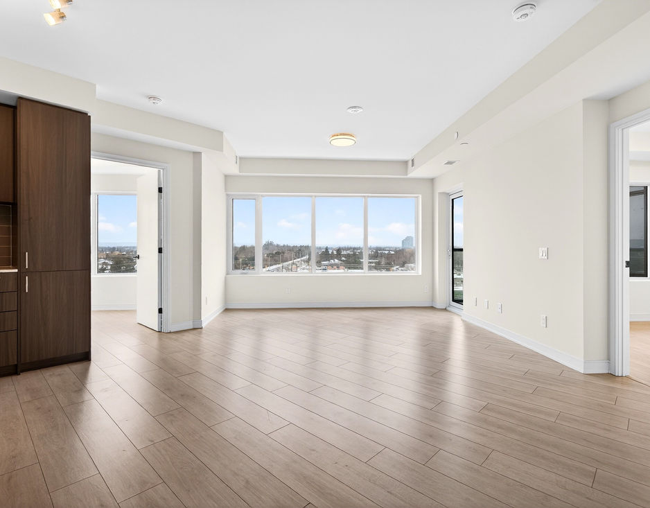 Welcome to unit 602 at 8020 Derry Road! This brand new, never-lived-in 2025-built corner unit condo offers 2 bedrooms & 865 sq ft of modern living with exceptional natural light in a prime Milton location. The building features a beautifully finished, welcoming lobby—ideal for entertaining or casual mingling. Inside, enjoy wide-plank laminate flooring in a light wood tone and a bright, open-concept layout connecting the kitchen, dining, and living areas. Large picture windows fill the space with natural light, while the north-facing exposure and walkout balcony offer the rare opportunity to enjoy both sunrise and sunset views. The contemporary kitchen features sleek flat-panel, full-height cabinetry in a warm wood finish, stainless steel appliances, modern tile backsplash, and ample storage—perfect for everyday living and hosting. The spacious primary bedroom includes a large window, walk-in closet, and private 3-piece ensuite. A generously sized second bedroom features a wall-to-wall window, complemented by a second full 4-piece bathroom. Added conveniences include in-suite washer and dryer and neutral finishes throughout. Residents enjoy access to an impressive array of amenities, including a fully equipped gym, party room, theatre, kids’ playroom, pool, and outdoor barbecue area. Conveniently located near Highway 401, transit, shopping, dining, parks, trails, and schools, this move-in-ready condo offers the perfect balance of lifestyle and connectivity in a growing community.